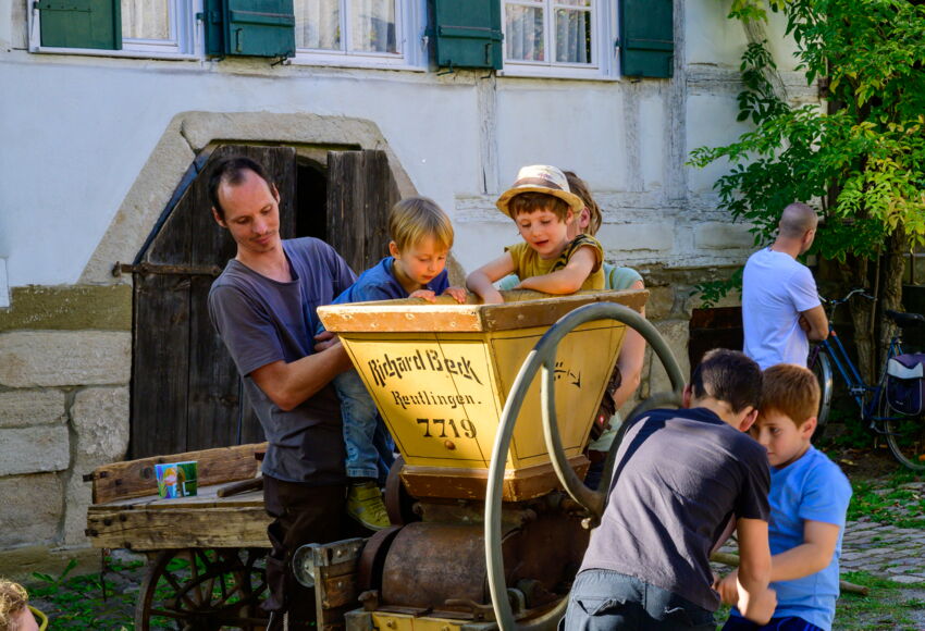 Aus vergangenen Alltagen für die Zukunft lernen: Kinder erleben, wie man früher im Dorf gelebt hat. Themen wie Licht und Dunkelheit, Kälte und Wärme, Ernährung und Landwirtschaft werden anschaulich erklärt und praktisch erarbeitet. Kinder erfahren auf kreative Weise wie ein Kinderleben früher aussah: zwischen Schule, Feldarbeit und Spiel. Sie sammeln Erfahrungen in Handarbeit- und Handwerk. Dabei steht ein bewusster Umgang mit Dingen und Lebensmitteln im Vordergrund. Zum Abschluss werden die Arbeiten im Keltermuseum präsentiert.